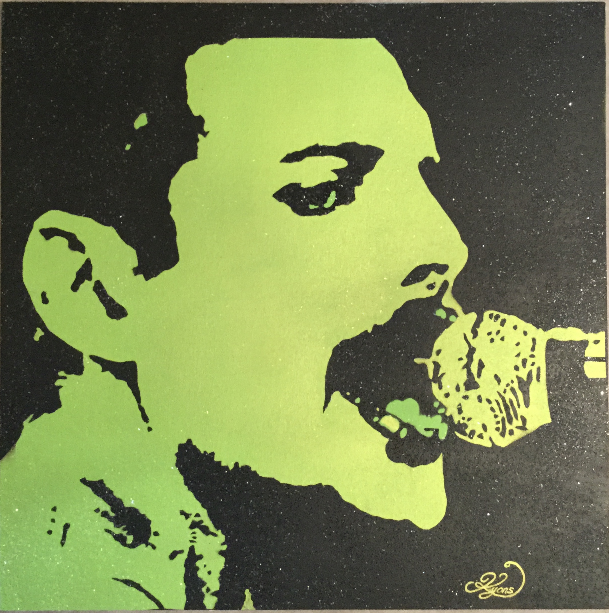FREDDIE MERCURY GREEN – Framed Acrylic – Highly embellished with Diamond Dust. Vibrant colours make this original piece of artwork stand out and would look amazing in your home.